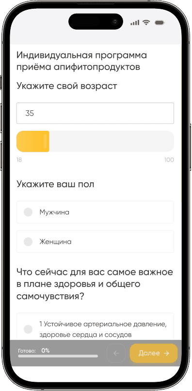 Ответьте на вопросы теста и система сама подберёт апифитопродукты под ваши задачи